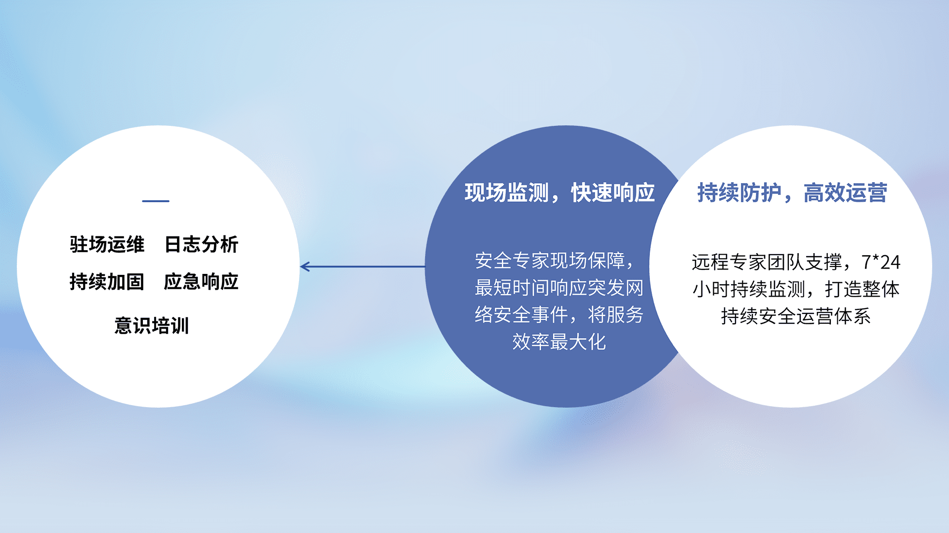 7X24小时持续监测安全事件,保持安全策略有效性,降低资产脆弱性风险,,精准拦截黑客攻击,,减少被黑客利用的机会,,,,第一时间遏制,,降低损失。。